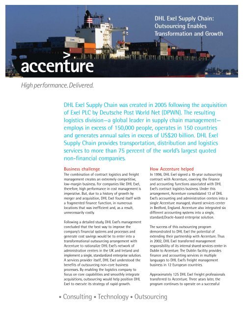 Dhl Exel Supply Chain Was Created In 2005 Following The Accenture